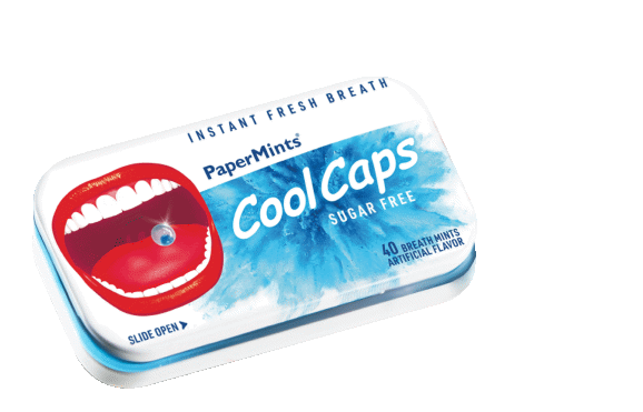 24 instant-dissolving mint strips for long-lasting fresh breath. Ideal for your pocket or purse. Papermints Strips, your breath freshener wherever you are. STOP chewing.