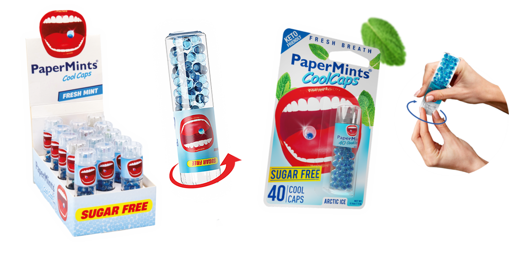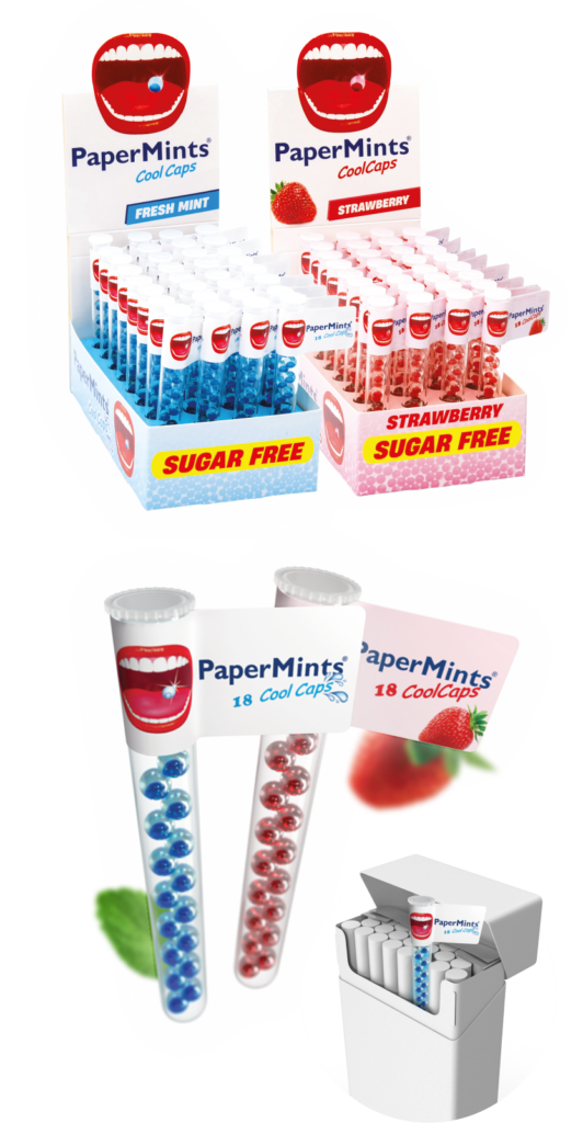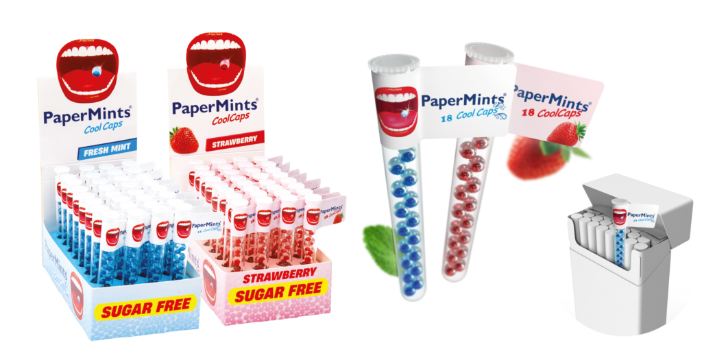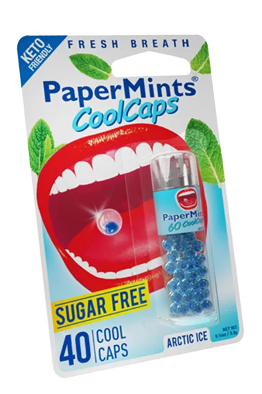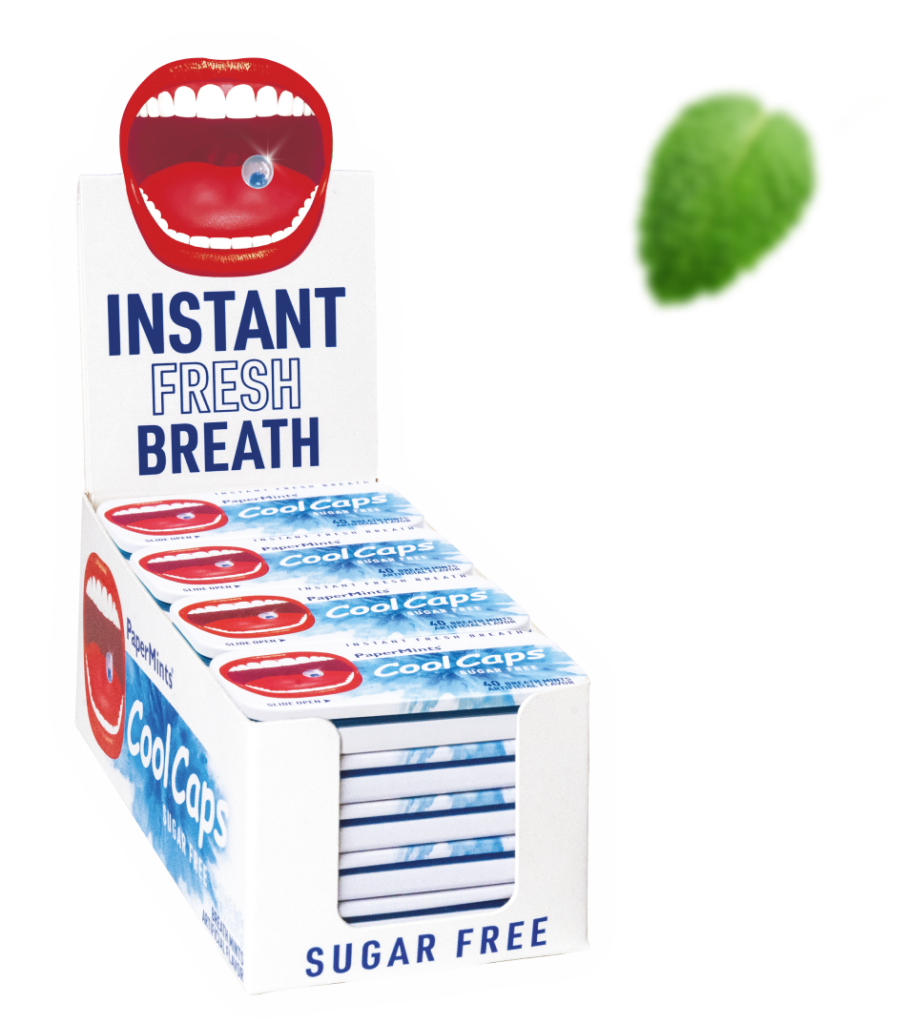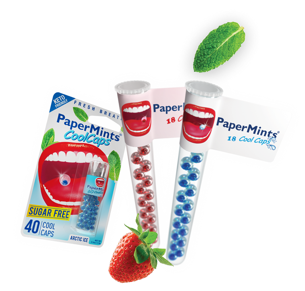 Your COOLCAPS available in 2 flavors. The strong peppermint flavor and also a smoother strawberry flavor. Its dual-action liquid capsules, a Ideal use before a meeting.